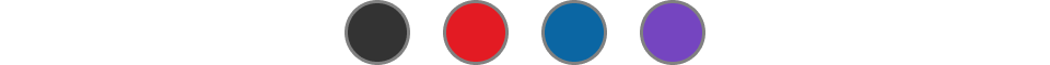 Rouge, bleu, mauve, argenté, noir